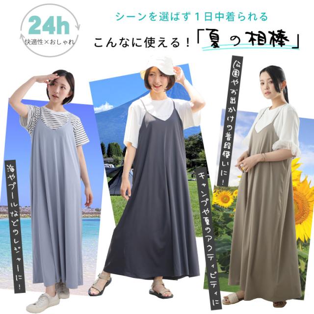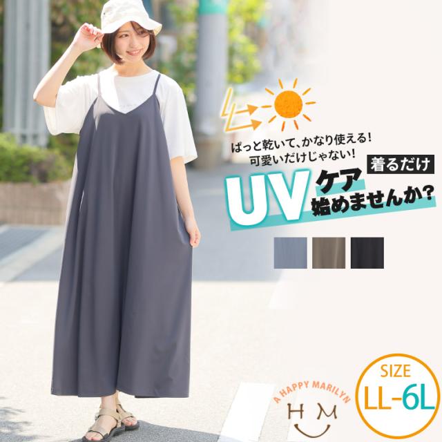 新作 大きいサイズ レディース ワンピース | すぐ乾いて可愛い! ラッシュガード キャミワンピース [861747] LL 3L 4L 5L 6L