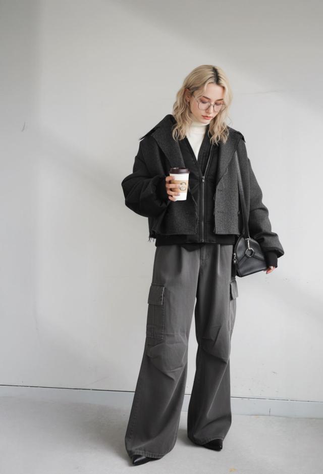 内側にはジップアップのMA-1風ディテールを隠し持ち、二重構造が遊び心と防寒性を両立。