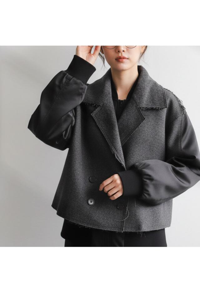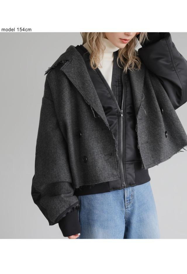 pa-03821 ヴィンテージ風 アウター ジャケット ビッグシルエット おしゃれ ショート丈 裏地付き ダブルボタン リブ袖 モード 羽織り 前開き 長袖 防寒 防風 リメイク風 中綿 古着風