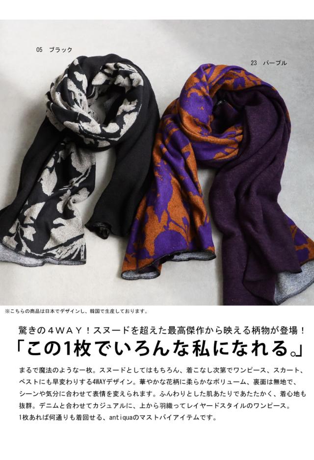 シンプルな巻き物では物足りないという方にこそおすすめしたい、antiquaらしい柄と発想が詰まったアイテムです。
