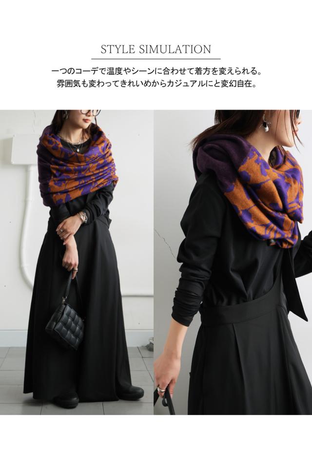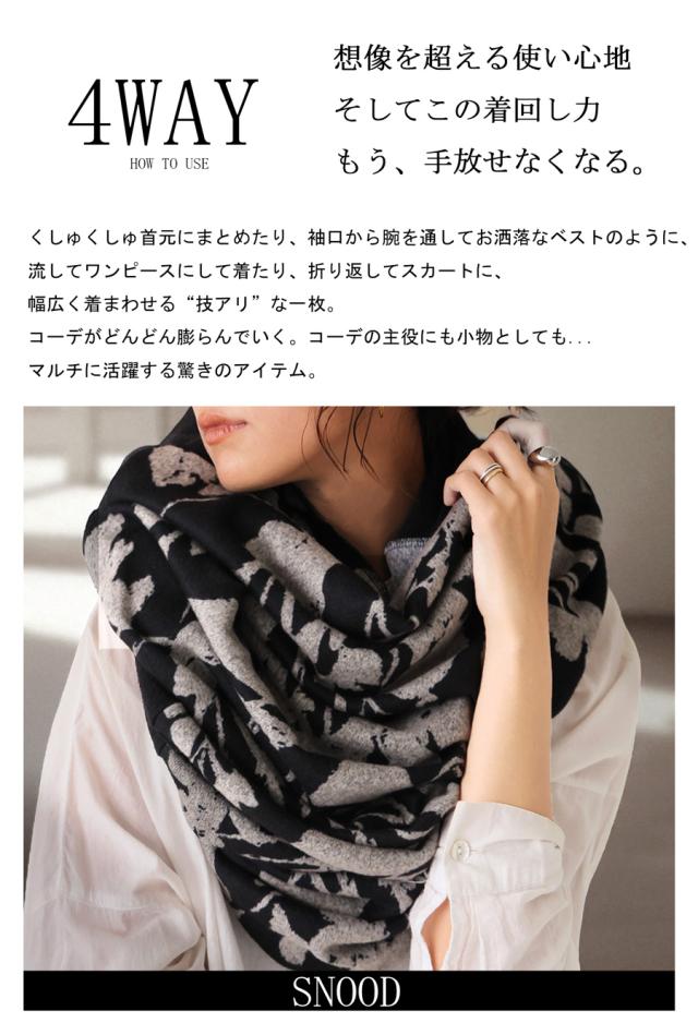 首元に巻くだけのスヌードスタイルはもちろん、スカート、ワンピース、ベスト風など、着こなし次第で印象を自在に変えられる4WAY仕様。