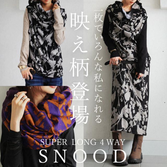 あったか2点10%OFF!7日20時〜14日10時 4WAYロングスヌード スヌード レディース 柄 送料無料・再入荷 メール便不可 秋新作