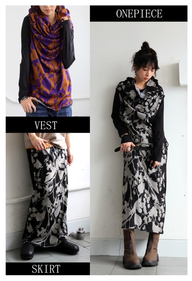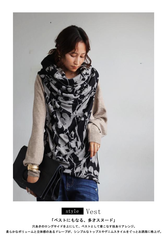 pa-03822 4WAY ロングスヌード ショート丈 ベスト ワンピース スカート ノースリーブ ロングワンピ 起毛素材 防寒 小顔効果 重ね着 レイヤード 変形 アラベスク柄