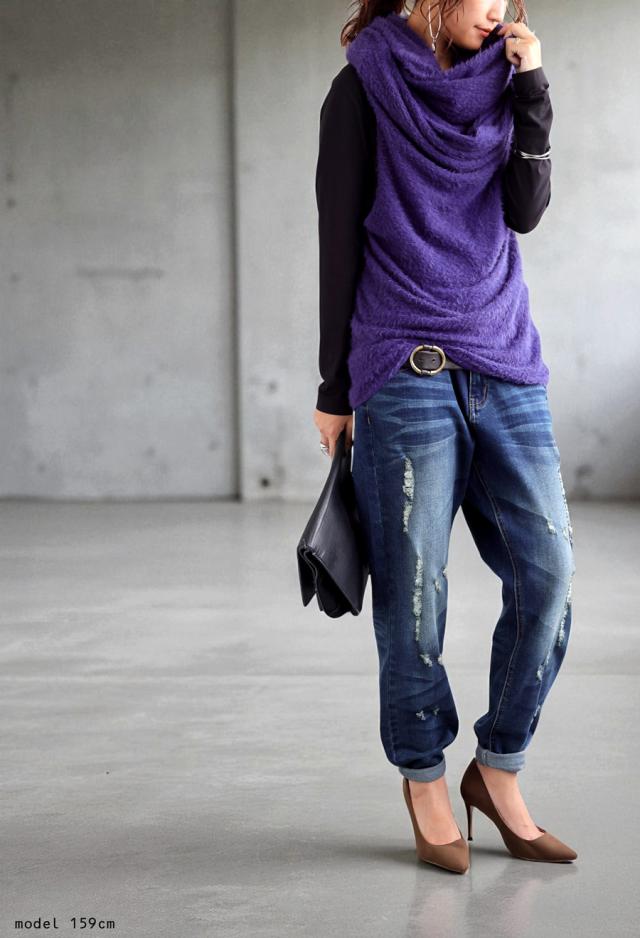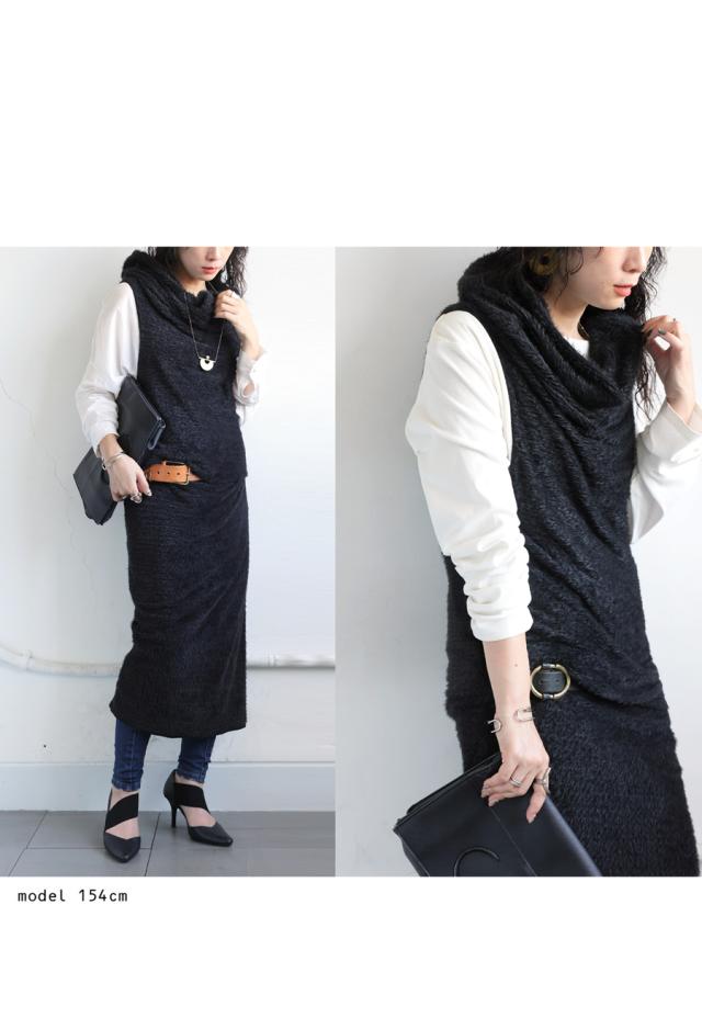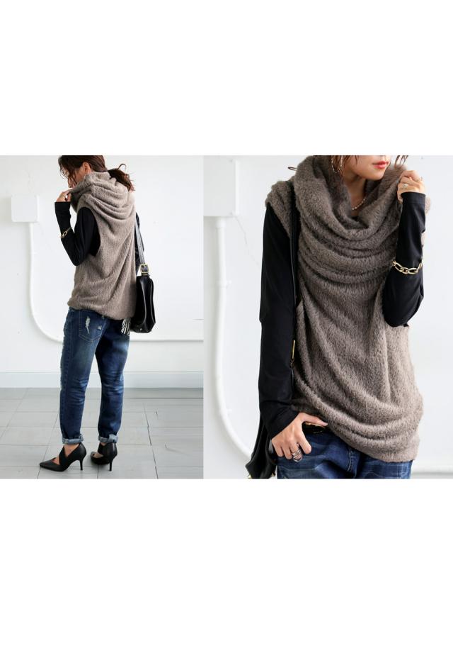 ベスト風にすっぽり被れば体を包み込むシルエットになり、柔らかな毛足がやさしく肌に寄り添います。