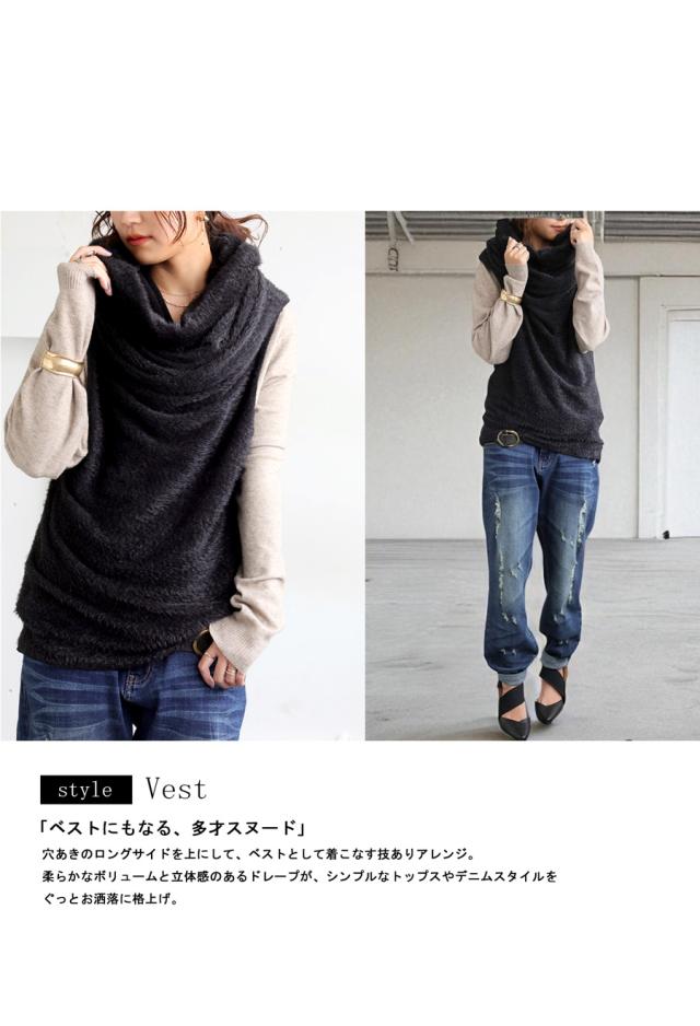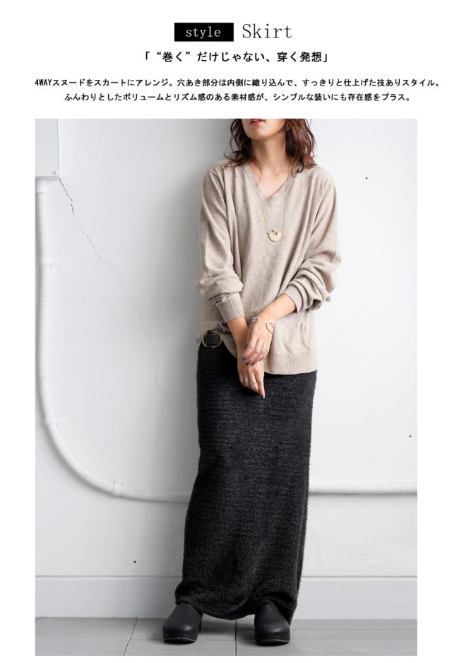 一枚でスヌード・スカート・ワンピース・ベストとして楽しめる、多機能デザインがポイントです。