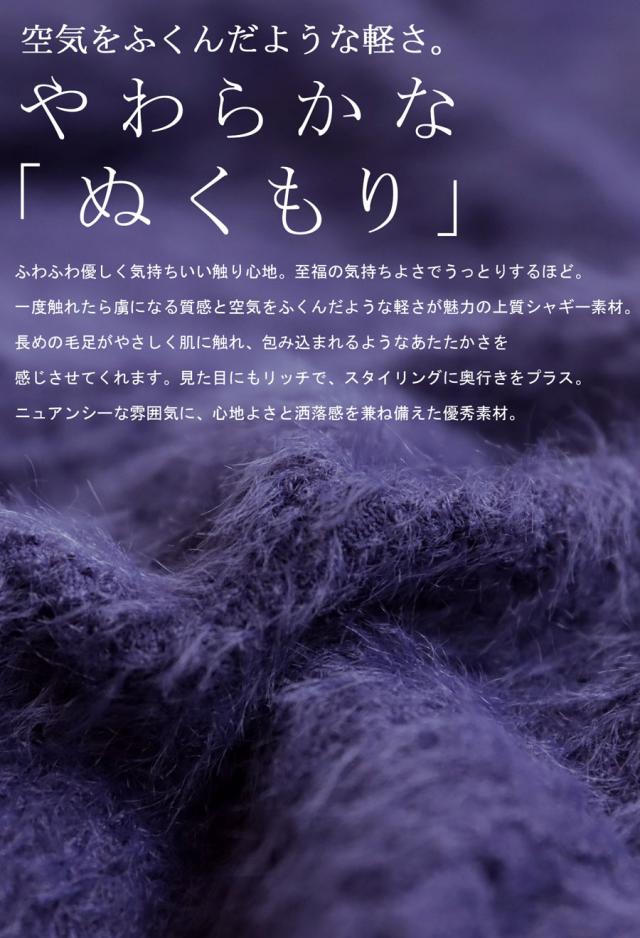 上質なシャギー素材は、空気を含むように軽く、見た目以上にあたたかくて快適な着用感。