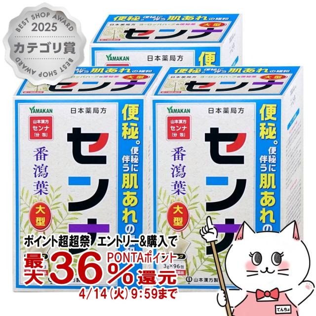 【超超祭 最大36%還元】【指定第2類医薬品】[セット]山本漢方 日本薬局方 センナ 大型 分包 (3g×96包)×3個[山本漢方][便秘薬/ティーバッグ][送料無料](6061006-set2)