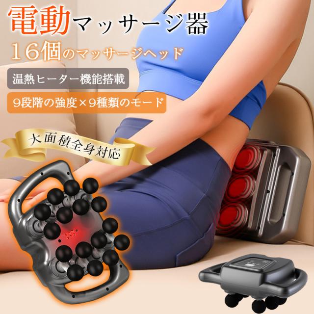 【当日発送】マッサージガン マッサージ器 筋膜リリース 電動 強力 16つヘッド マッサージ機 全身用 9段階調節 リラックス プレゼント 母の日 父の日