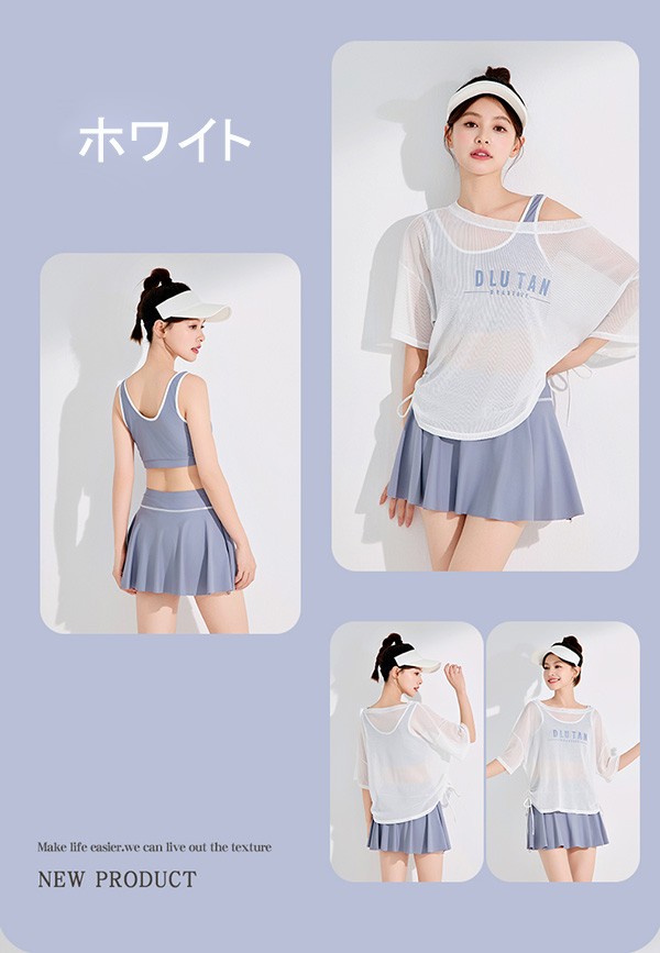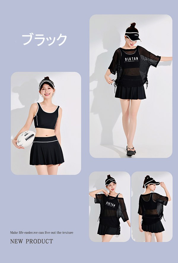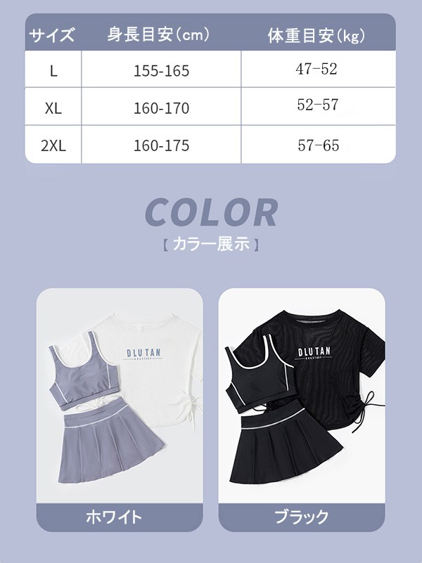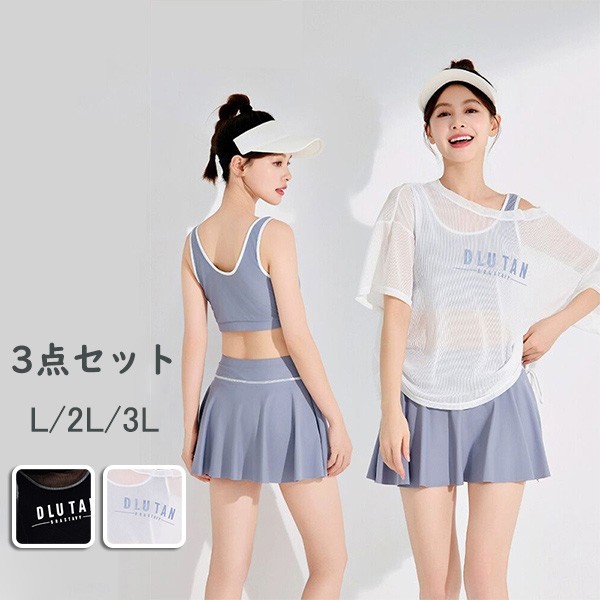 タンキニ 水着 服みたいな 中学生 高校生 3点セットラッシュガード 女の子 30代 ママ水着 カバーアップ セパレート ショートパンツ 大きいサイズ 韓国 小胸 露出控えめ 海 プール リゾート おしゃれ 可愛い カバーアップ 胸パッド付き ホワイト ブラック L 2L 3L mg003m5