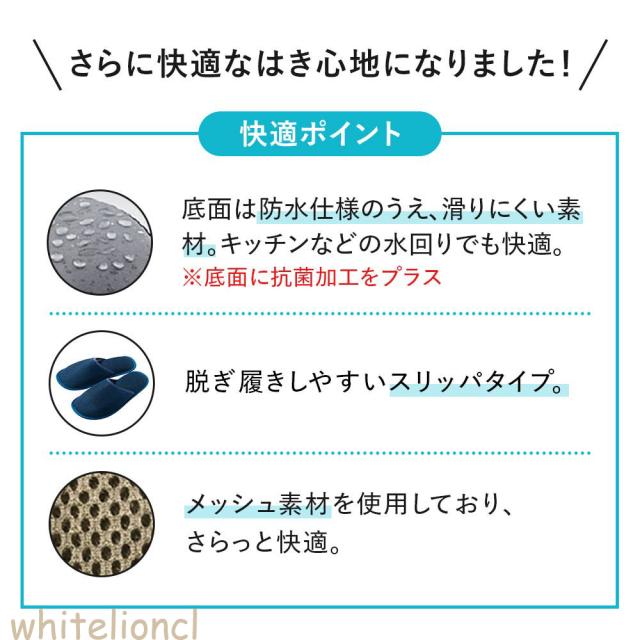 足裏は防水仕様ですべりにくい素材で、キッチンなどの水まわりでの着用も安心。