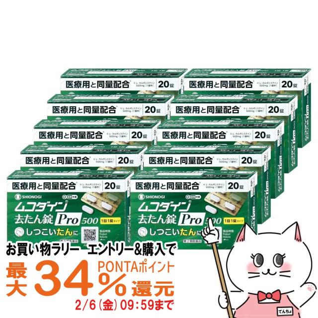 【お買い物ラリー 最大34%還元】【第2類医薬品】[セット]ムコダイン 去たん錠Pro500 20錠×10個(セルフメディケーション税制対象)[シオノギヘルスケア][せき・のどの痛み][送料無料](6057474-set4)