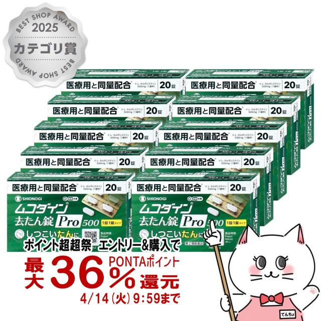 【超超祭 最大36%還元】【第2類医薬品】[セット]ムコダイン 去たん錠Pro500 20錠×10個(セルフメディケーション税制対象)[シオノギヘルスケア][せき・のどの痛み][送料無料](6057474-set4)