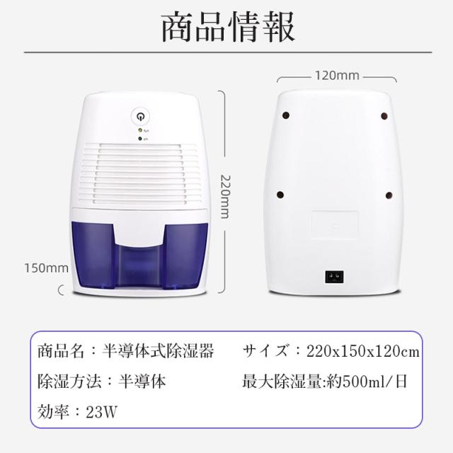 除湿機 小型 除湿器 コンパクト 500ml大容量 USB充電式 半導体式 省エネ 強力除湿 梅雨対策 部屋干し ダニ対策 自動停止機能 軽量 静音