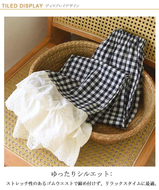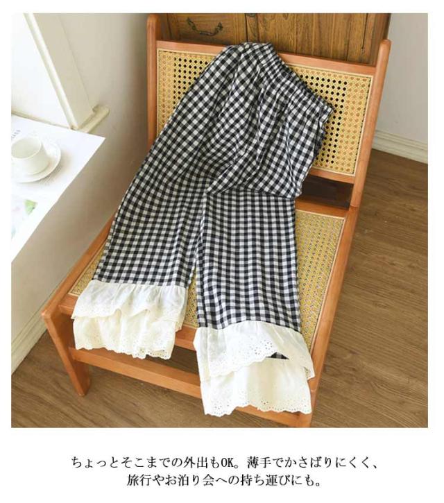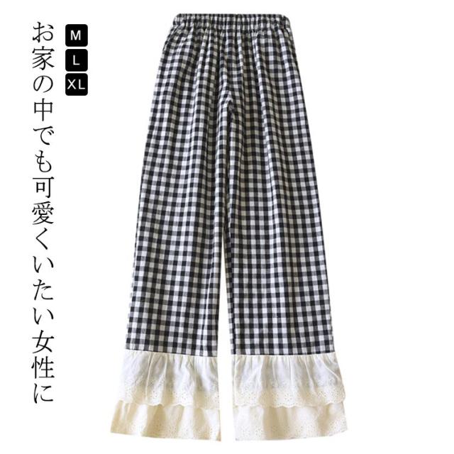 ルームパンツ ルームウェア レディース レース フリル チェック柄 寝巻き 寝間着 部屋着 薄手 長ズボン ロングパンツ パジャマパンツ ホームパンツ ウエストゴム 柄 かわいい 可愛い 女性用 ゆったり リラックスウェア カジュアル 夏 送料無料