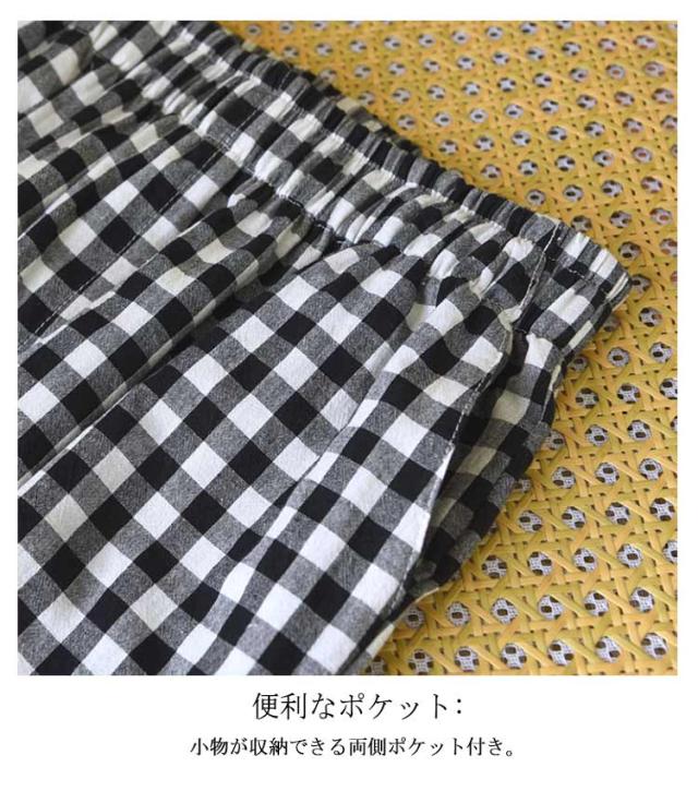 | 【お家の中でも可愛くいたい女性に】 ゆったりシルエット: ストレッチ性のあるゴムウエストで締め付けず、リラックスタイムに最適。 便利なポケット: 小物が収納できる両側ポケット付き。 サラリと軽いコットン混紡素材。素肌に触れても安心&汗ばむ季節もムレにくい! 脚のラインを拾いにくいストンとしたシルエットで程よくゆったりとした穿き心地に。 ちょっとそこまでの外出もOK。薄手でかさばりにくく、旅行やお泊り会への持ち運びにも。 | |