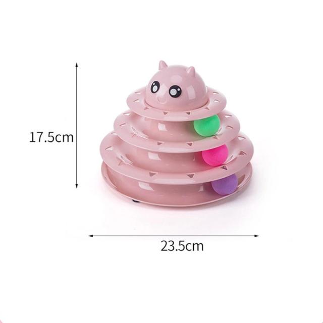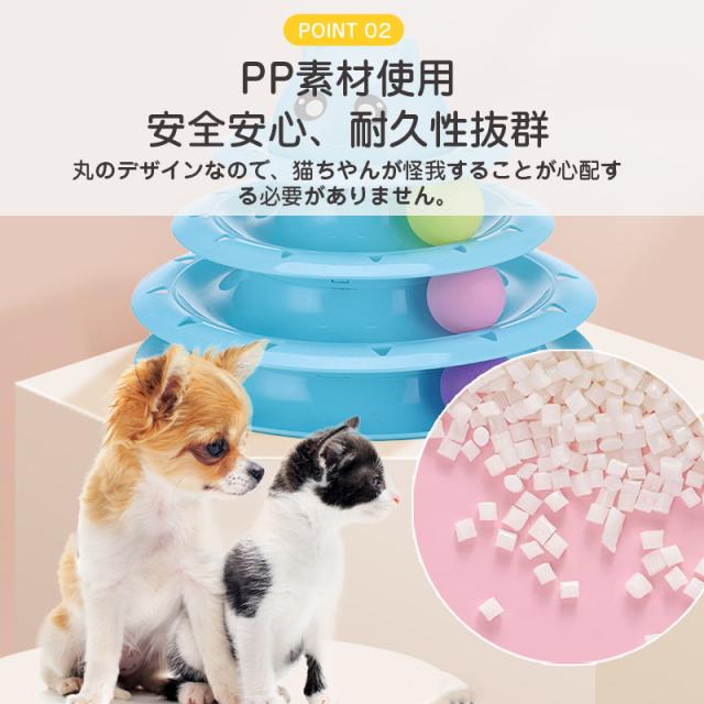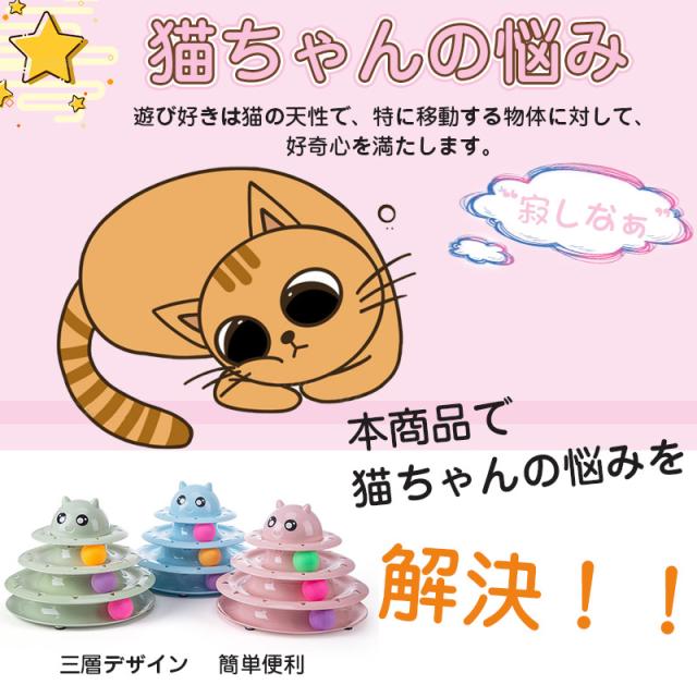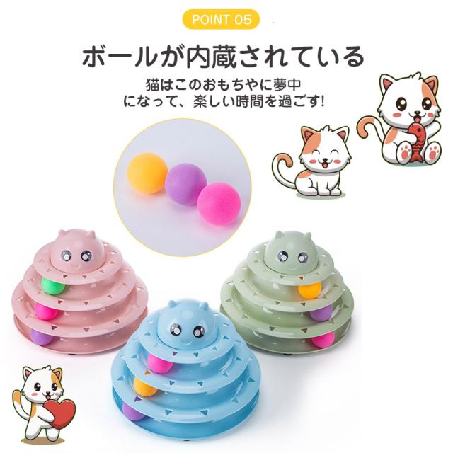 転がって走るボールに猫ちゃんも大興奮です。タワーの中を転がるボールを必死に追いかけるため、室内飼いの猫ちゃんの運動不足とストレスを解消することにも役立ちます。