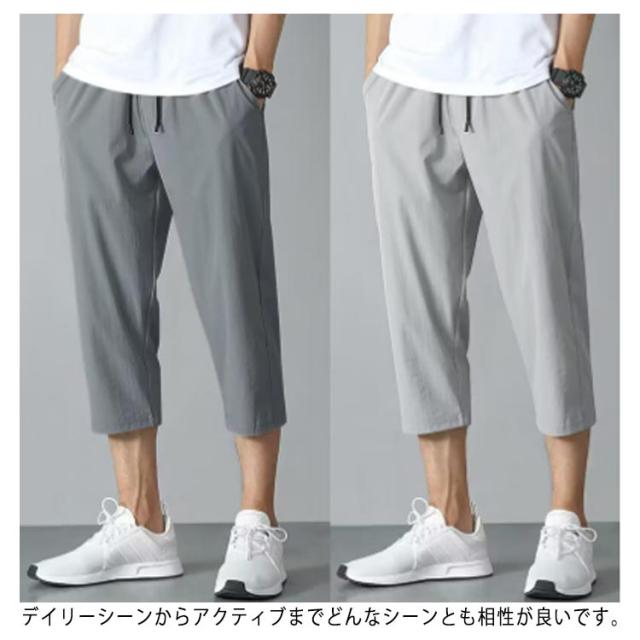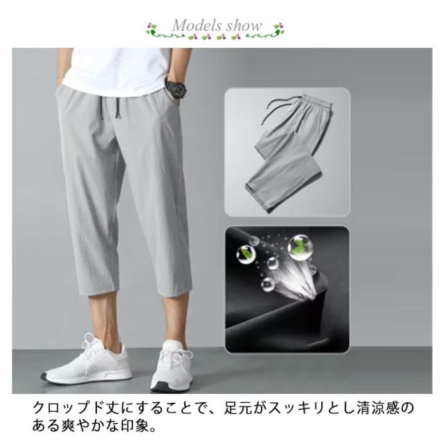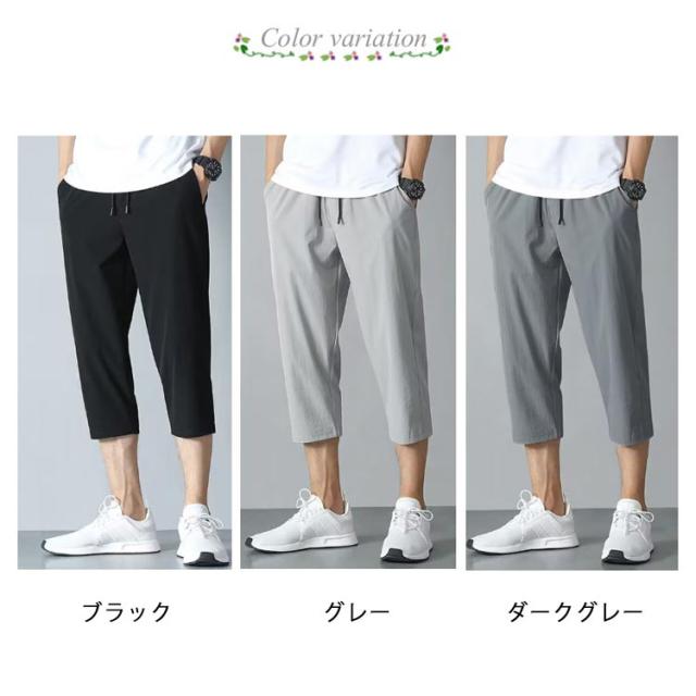 全3色 アイスシルクパンツ ハーフパンツ メンズ 春 夏 クロップドパンツ ひざ下 膝下丈 ストレッチ 7分丈 冷感 ひざ下 ゆったり チノパン 夏 大きいサイズ スポーツ 軽い 春夏 テーパード 夏服 無地 ゴルフ おしゃれ カジュアル 部屋着 外出着 運動着 送料無料