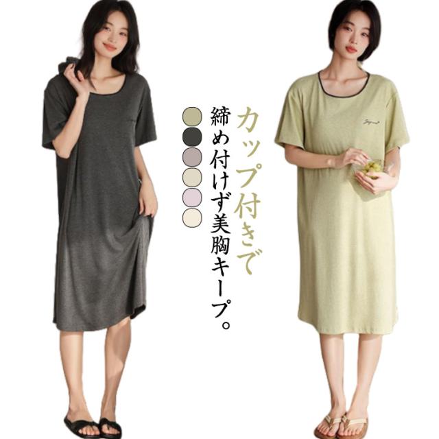 ワンピース ルームウェア レディース カップ付き 半袖 ナイトウェア 部屋着 パッド付きワンピ カップ付きワンピース 夏用 涼しい ゆったり 快適 肌触り 柔らかい かわいい 大きいサイズ 体型カバー
