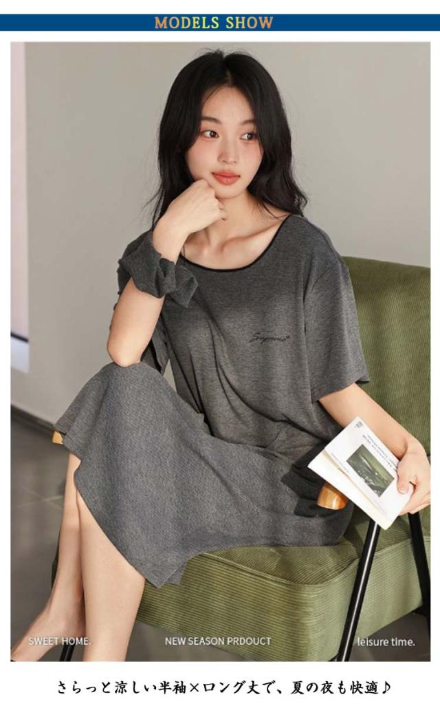 | 寝るときも、リラックスタイムもこれ1枚でOK! カップ付きで締め付けず美胸キープ。 さらっと涼しい半袖×ロング丈で、夏の夜も快適♪ 部屋着として、パジャマとして1枚は持っていたいラクラクワンピース。 | |