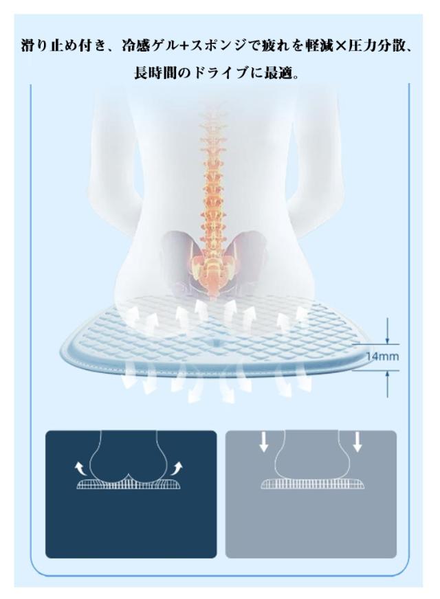 | 放熱性優れるハニカム構造+TPE冷感ゲル+接触冷感タッチ!清涼感のある背+シートカバーです。 汗を発散させ背中・お尻の不快感を解消! 滑り止め付き、冷感ゲル+スポンジで疲れを軽減×圧力分散、長時間のドライブに最適。 | |