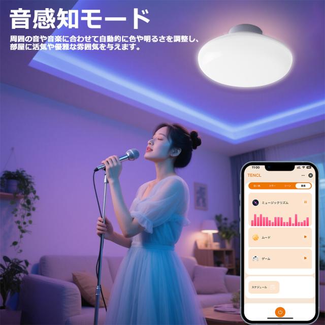 【タイマー&常夜灯】シーリングライト led おしゃれ 照明 電気 省エネ 4畳 4.5畳 6畳 LEDシーリングライト リモコン付き 北欧 明るい 調光 調色 ライト 10w リビング 子供部屋 寝室 和室 洋室 インテリア照明 アプリ対応 RGBモード シーンモード 音感知 工事不要 1年保証