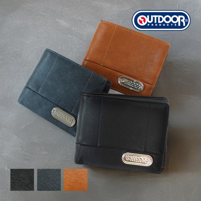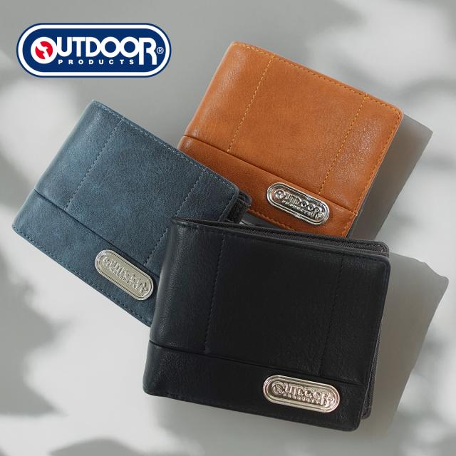 アウトドアプロダクツ 22469124 財布 折財布 二つ折財布 OUTDOOR PRODUCTS ロゴプレート ステッチワーク メンズ サイフ