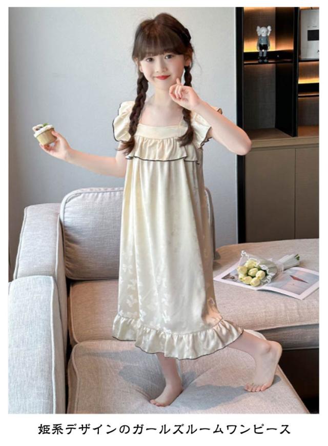子供服 ロング丈 夏 パジャマ 女の子 キッズ キッズ キッズ パジャマ 女児 ルームウェア ルームワンピース ワンピース ネグリジェ プリンセス 寝間着 大きいサイズ 夏 ナイトドレス 部屋着 春 寝巻き 姫系 かわいい 春 半袖 秋 冬 ギフト プレゼント