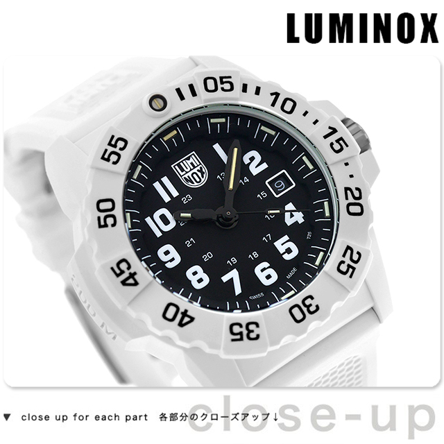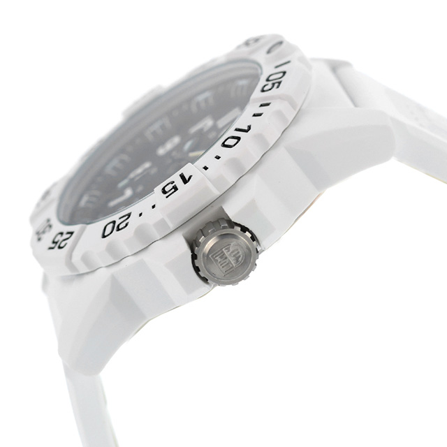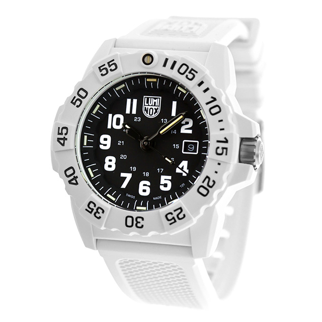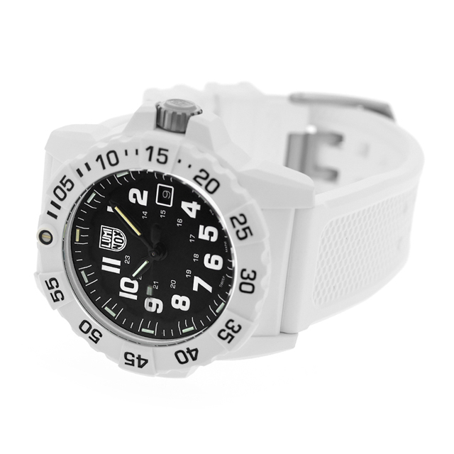 7年保証キャンペーン ルミノックス ネイビーシールズ 3500シリーズ スイス製 メンズ 腕時計 XS.3507.WB LUMINOX NAVY SEAL 3500 SERIES アナログ ブラック 黒 ◆LUMINOX(ルミノックス)は1989年に創業。高性能なスポーツラインを展開しており、ラテン語で「明るい夜」を意味するブランド名を掲げているように、最先端の発光と視認性の良さを特徴としています。極限の状況下で行われるミッションで必要となる視認性を確保しているルミノックス時計は、特殊軍用時計として絶対的な信頼感を得ています。 氷に覆われた過酷な環境で活動する隊員のために設計された印象的なホワイトモデル。軽量なホワイトのファイバーグラス製ケースとベゼルという新モデルは、雪山でのカモフラージュや耐久性などによりシールズ隊員だけでなく北極探検家にも最適です。ルミノックス・ライト・テクノロジー(LLT)搭載。