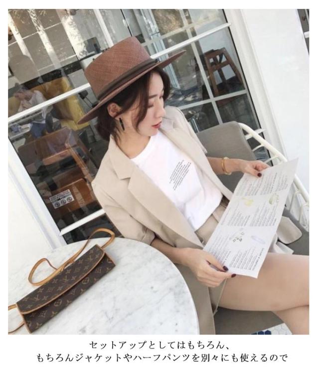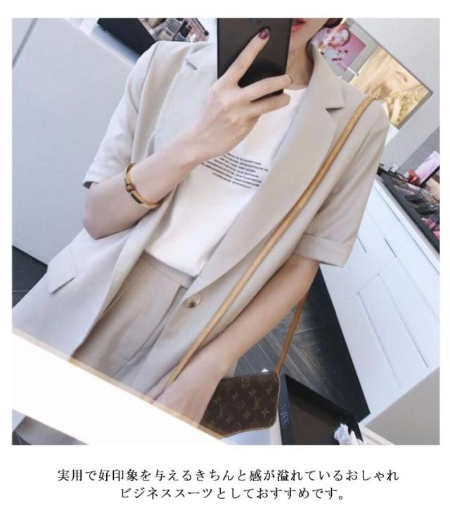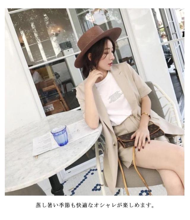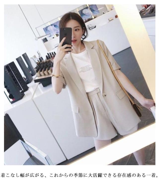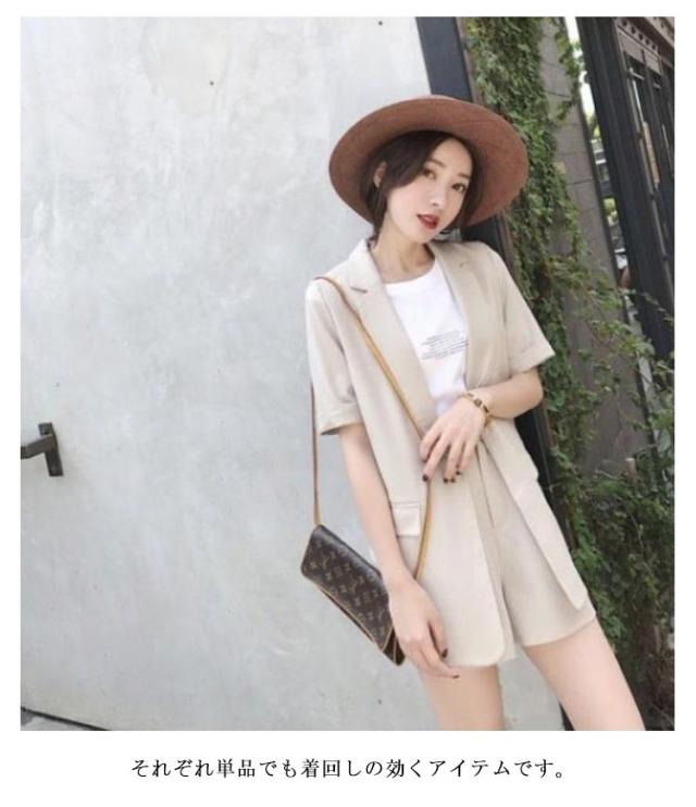 セットアップ サマージャケット レディース スーツ 短パン セットアップ 無地 ショート丈 半袖ジャケット テーラードジャケット 上下セット ショートパンツ 春 夏 セットアップ きれいめ 通勤 オフィス