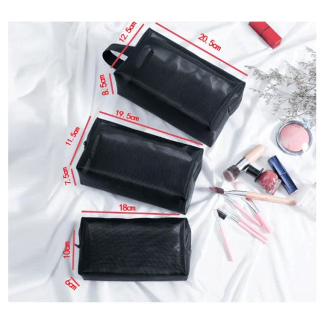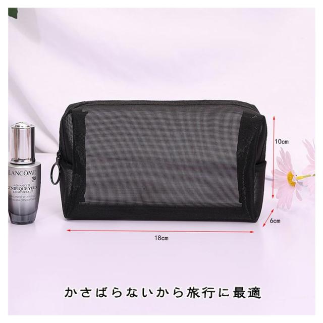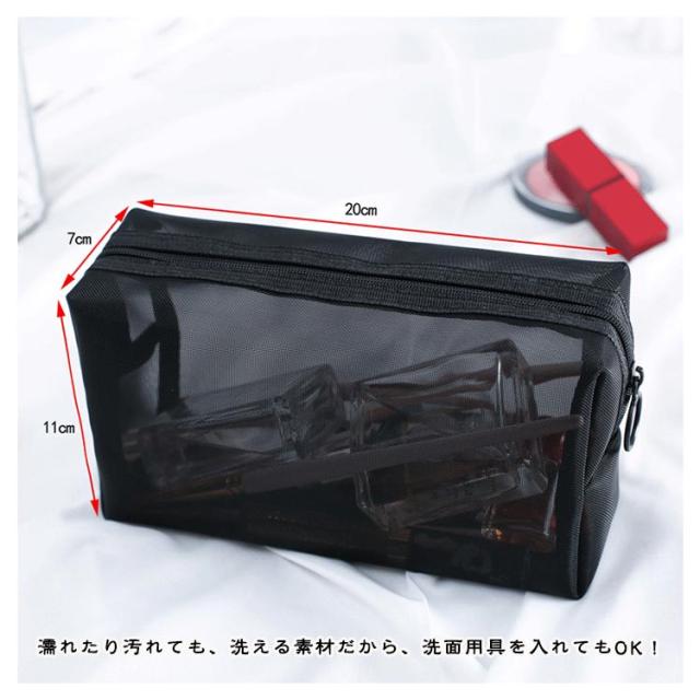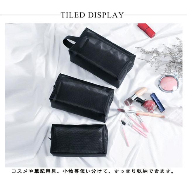 方形 透明感 ポーチ メッシュ メッシュポーチ 化粧ポーチ コスメポーチ クリアポーチ 大容量 トラベルポーチ メイクポーチ クリア ポーチ コンパクト 軽量 3点セット 収納便利 可愛い 出張 旅行
