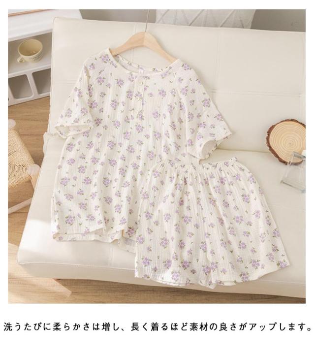 | 凸凹感があって、ベタつかず風通しがよい。 快適さとスタイルを兼ね備えたダブルガーゼパジャマで、おしゃれな時間をお過ごしください。 微妙な凸凹感を出しナチュラルな雰囲気を醸し出したコットンガーゼ、ふんわり柔らかで肌への負担も少なく、乾燥肌など、肌が敏感な人にオススメ。 洗うたびに柔らかさは増し、長く着るほど素材の良さがアップします。 夏の部屋着からご近所へのなどのお出かけにも手放せなくなる一着。 | |
