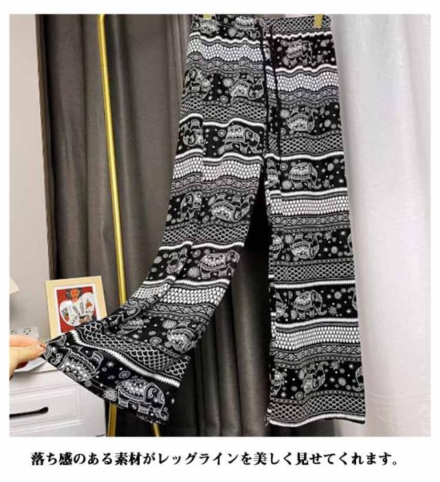 涼感 ワイドパンツ ワイド レディース 2枚セット ゾウ柄 2枚セット 薄手 接触冷感 パンツ タイパンツ ロング 夏 ルームウェア 部屋着 落ち感 冷感 ハイウエスト 体型カバー 通気性 ゴムウエスト ストレッチ パンツ