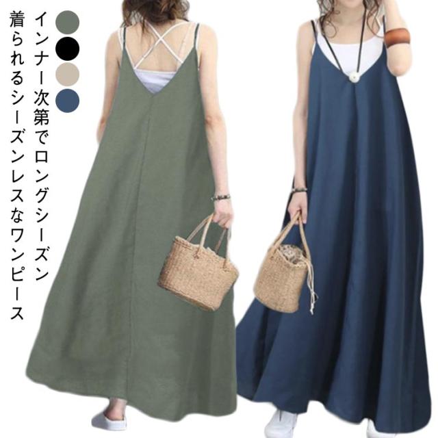 着回し ワンピース 重ね着 高身長 ロングワンピース キャミ ワンピース キャミソール キャミソールワンピース ロング丈 ノースリーブ レディース レイヤード Aライン ショルダーストラップ調節可能 きれいめ キャミソールワンピース 大きいサイズ 無地 低身長 シンプル