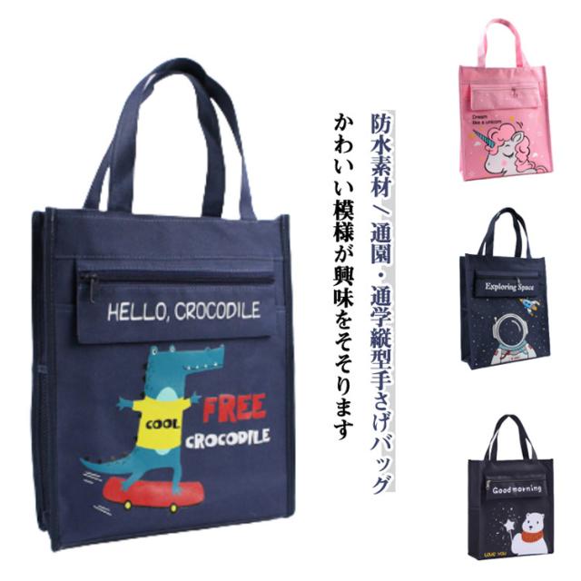 | 防水素材 / 通園・通学縦型手さげバッグ 防水オクスフォード布素材 本や文房具が楽々入る、とっても便利な塾バッグ 耐久性を高める強化ハンドル 前面にジッパー付きポケット1つ かわいい模様が興味をそそります | |