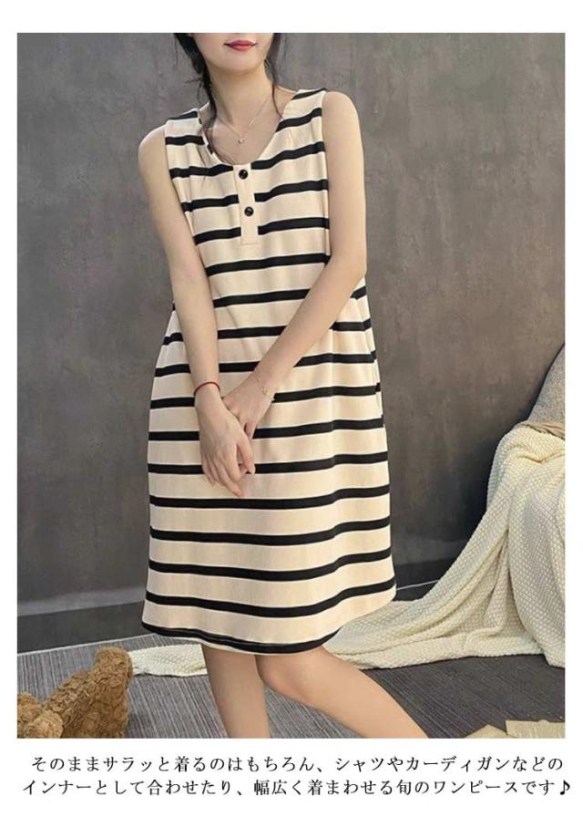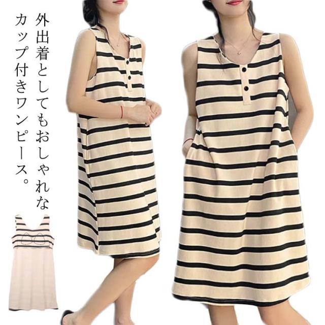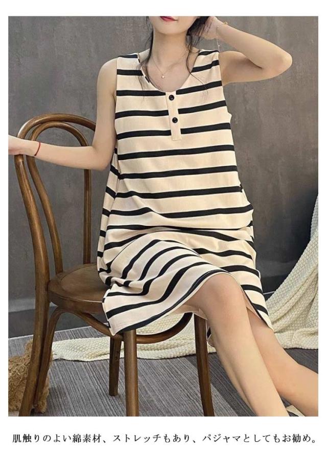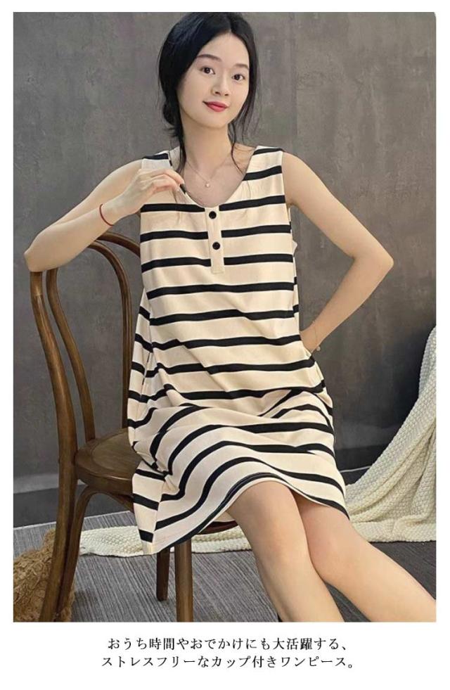 可愛い レディース タンクワンピース ポケット付き ボーダー ワンピース カップ付きワンピース キャミワンピ キャミワンピ ルームウェア ロングパンツワンピース ルームワンピース インナー ひざ丈 タンクワンピース パジャマ 綿 コットン 部屋着 20代 30代