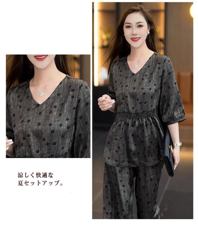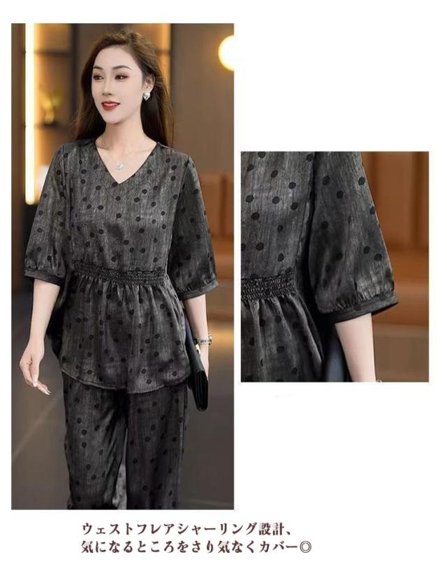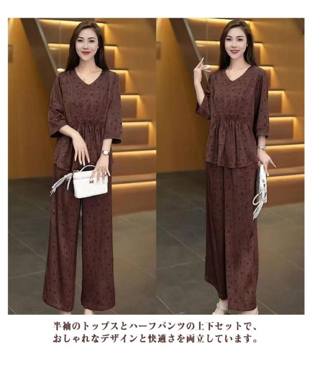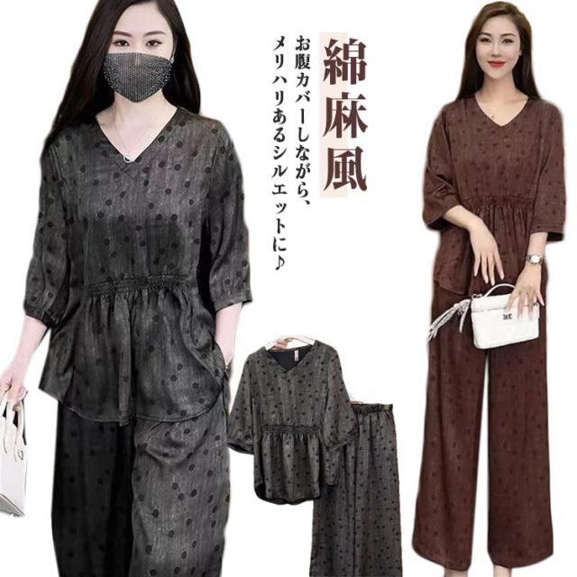パンツドレス 春 夏 体型カバー 40代 上下セット シャツ カジュアル セットアップ 涼しい 綿麻風 きれいめ ブラウス サマースーツ セットアップ ガチョウパンツ パンツスーツ 30代 50代 送料無料 ママスーツ