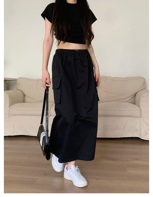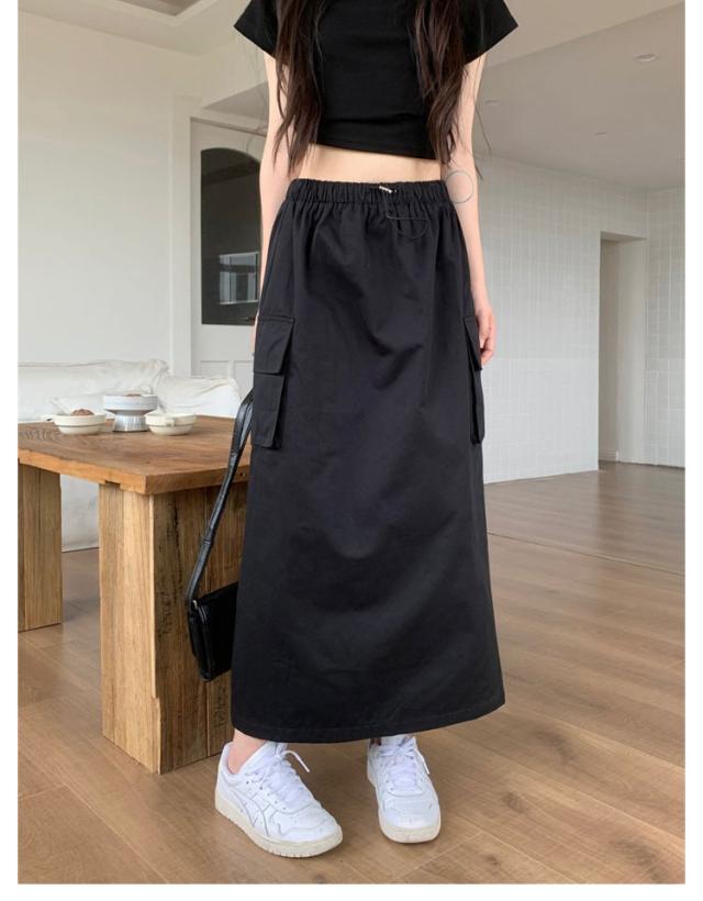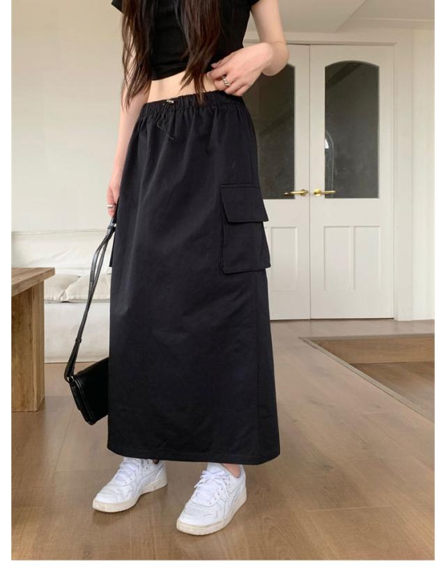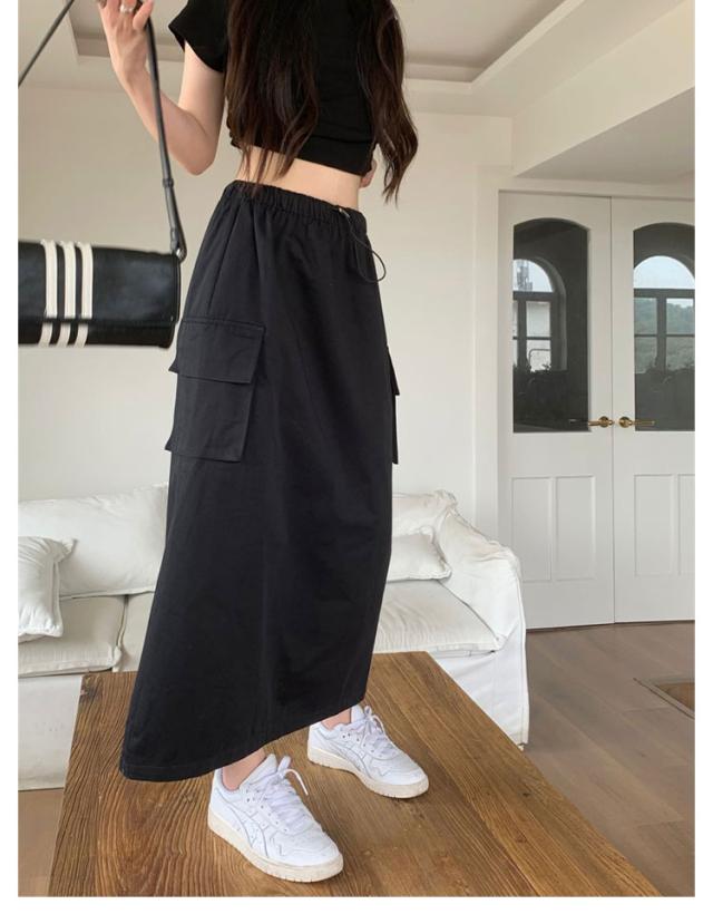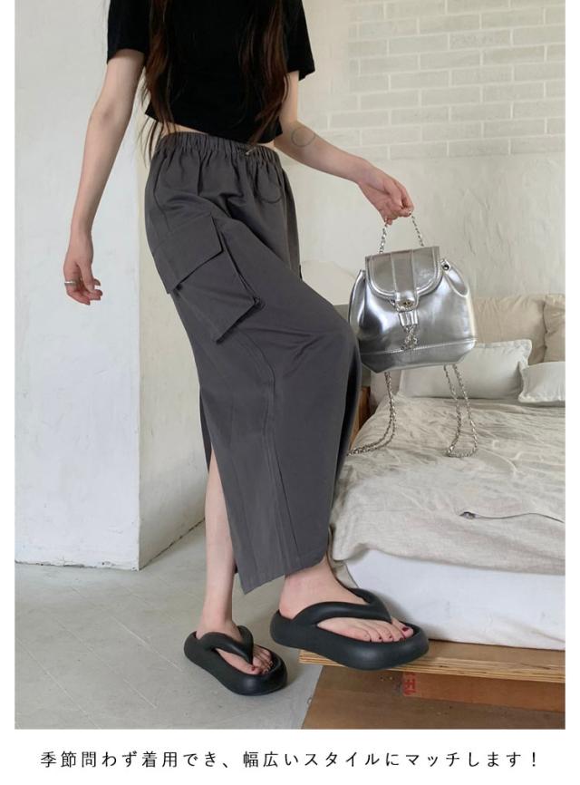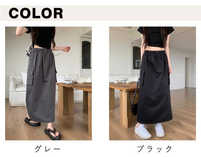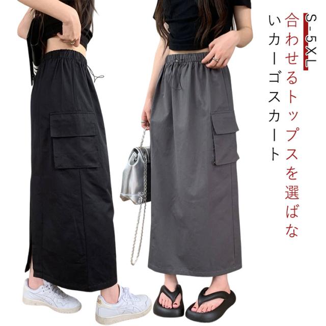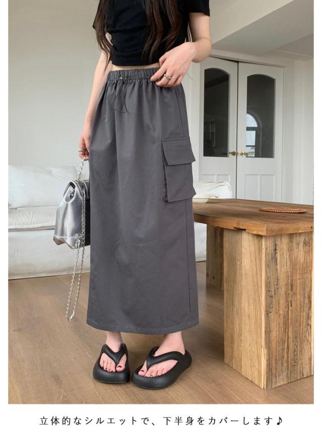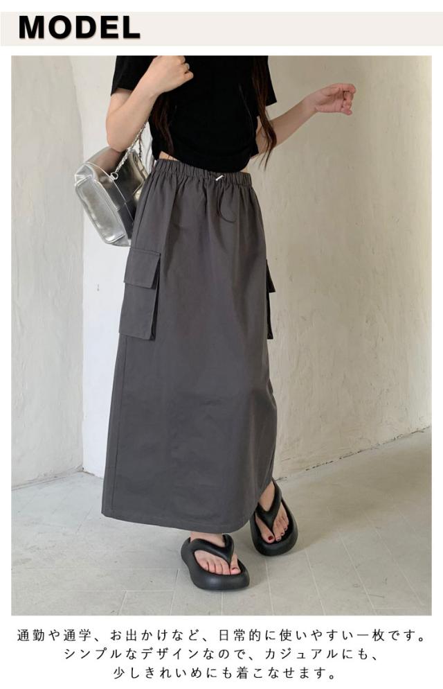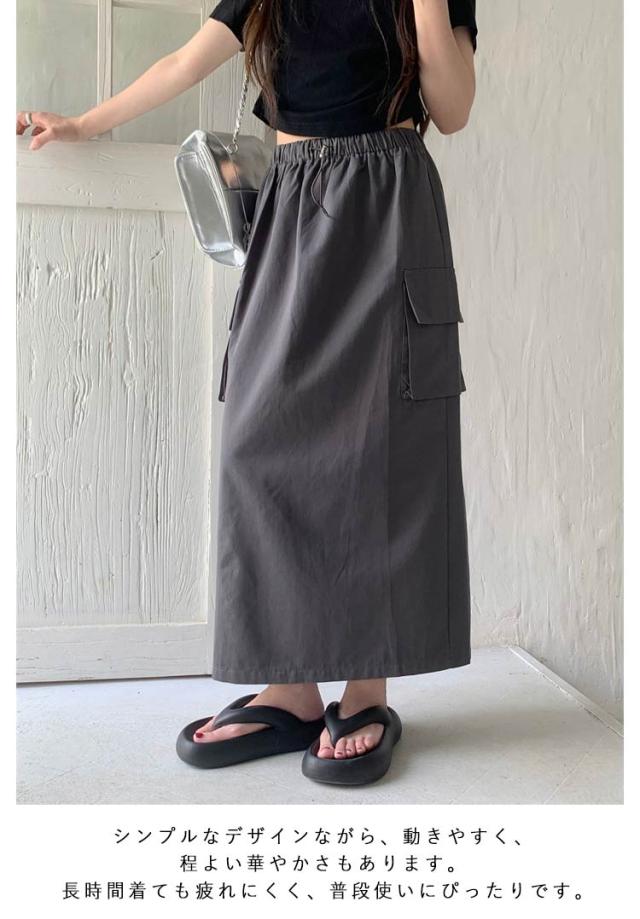 スカート マキシスカート 春夏 夏 ミリタリースカート ロングスカート ロング丈 ウエストゴム ポケット付き 体型カバー ロングスカート レディース 無地 部屋着 無地 シンプル 大きいサイズ 秋冬 カーゴ 美脚 女性 韓国ファッション カーゴスカート おしゃれ