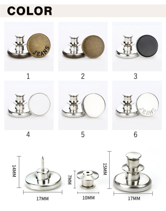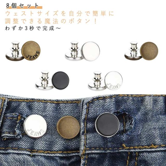セルフサイズ調整 取り外し可能 ボタン 8個セット 調整ボタン 交換用 ジーンズボタン ジャケット パンツ用 錆びにくい コート 手軽にウエスト調整 お直し タッズボタン シンプル 無地 8個セット セルフウエスト調整 手芸