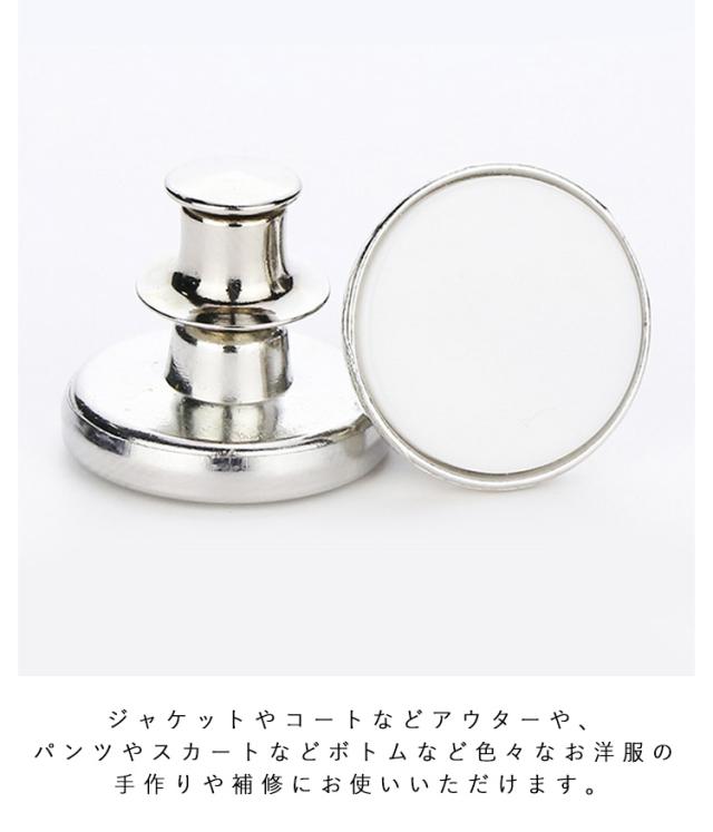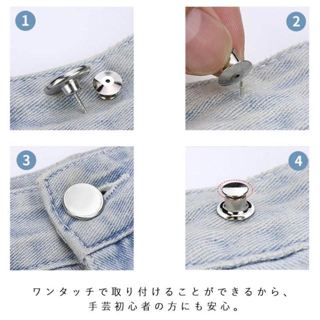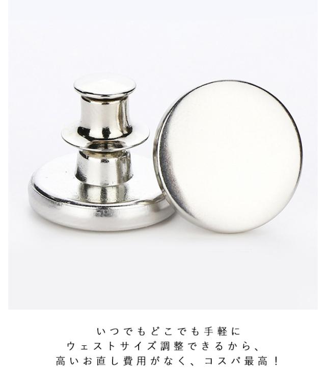 | ウェストサイズを自分で簡単に調整できる魔法のボタン!わずか3秒で完成〜 綺麗なシルエットを保ちながら、ぴったりなフィットへ。 ダイエットでサイズが合わなくたった、愛用のジーンズのボタンが破損した、ネットで買ったボトムスのウェストが大きかったなど悩みを抱えた方に超お勧めのウェスト調整ボタン。 いつでもどこでも手軽にウェストサイズ調整できるから、高いお直し費用がなく、コスパ最高! ワンタッチで取り付けることができるから、手芸初心者の方にも安心。 ジャケットやコートなどアウターや、パンツやスカートなどボトムなど色々なお洋服の手作りや補修にお使いいただけます。 取り外し可能なので、たくさんの服に繰り返し適用できます。 | |