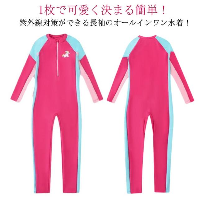 | ・紫外線対策ができる長袖のオールインワン水着! ・1枚で可愛く決まる簡単! | |