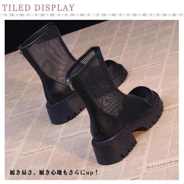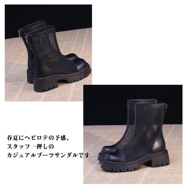 サンダル サマーブーツ メッシュ 太ヒール パンプス 通気性 パンプス ブーツサンダル レディース 美脚サンダル レディースブーツ 疲れない 透け感 歩きやすい ショートブーツ 夏 サマーブーツ ブラック カジュアルブーツ ショート丈ブーツ