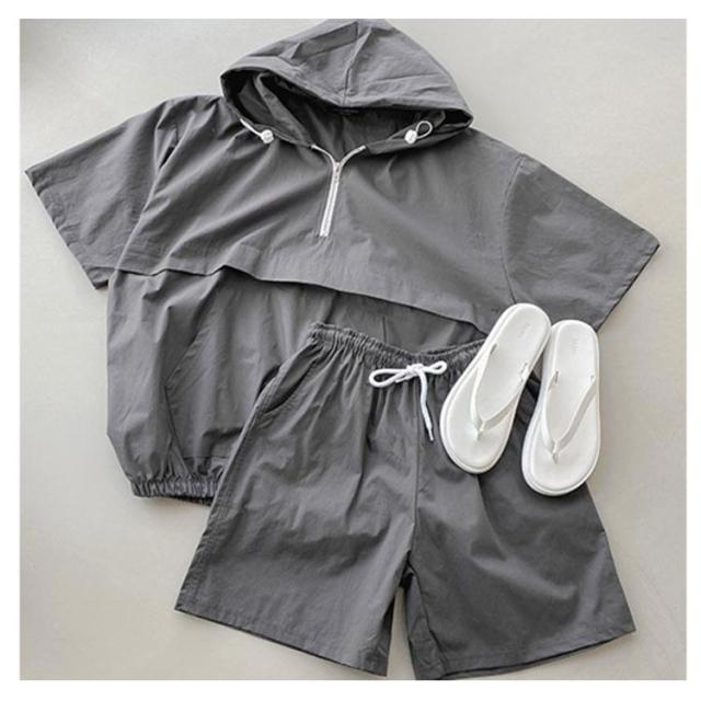 | 薄めの生地なので、通気性もよくさらっと着て頂けます。 素材は柔らかい素材感なので肌触りもサラサラで着心地も良く、夏場の汗の掻きやすい時にも安心です。 カジュアルコーデにはもちろん、スポーツやアウトドア、ルームウェア(部屋着)など様々シーンで活躍してくれる! ちょっとしたお出かけにも合わやすいシンプルさが魅力のゆるっと可愛い上下セットアップ。 | |