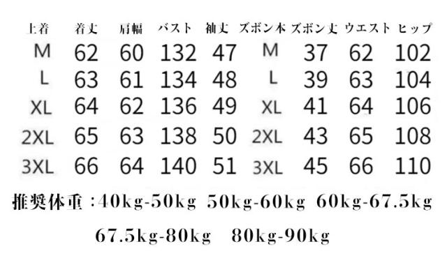 | サイズについての説明 | 【セット内容】トップス+パンツ サイズ表は画像をご参照ください |