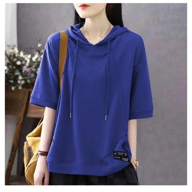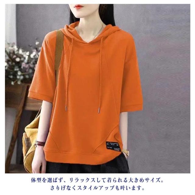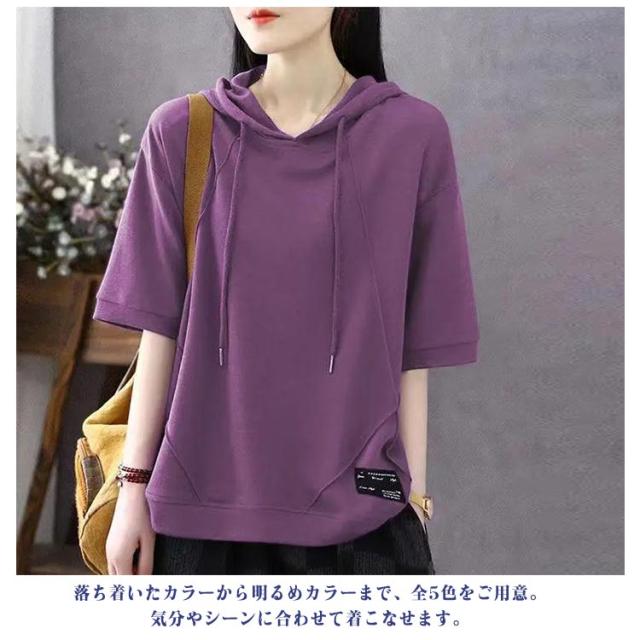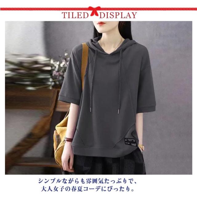 カジュアル パーカーtシャツ ゆったり パーカー風 半袖Tシャツ Tシャツ トップス 半袖パーカー トップス 半袖パーカー レディース 女性 大人 フード付きtシャツ シンプル 無地 おしゃれ 夏服 着?せ 体型カバー 春夏