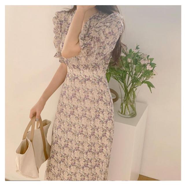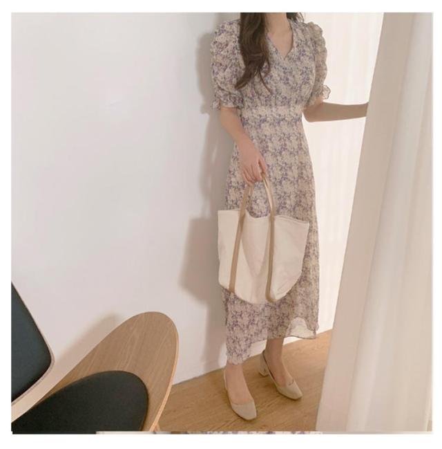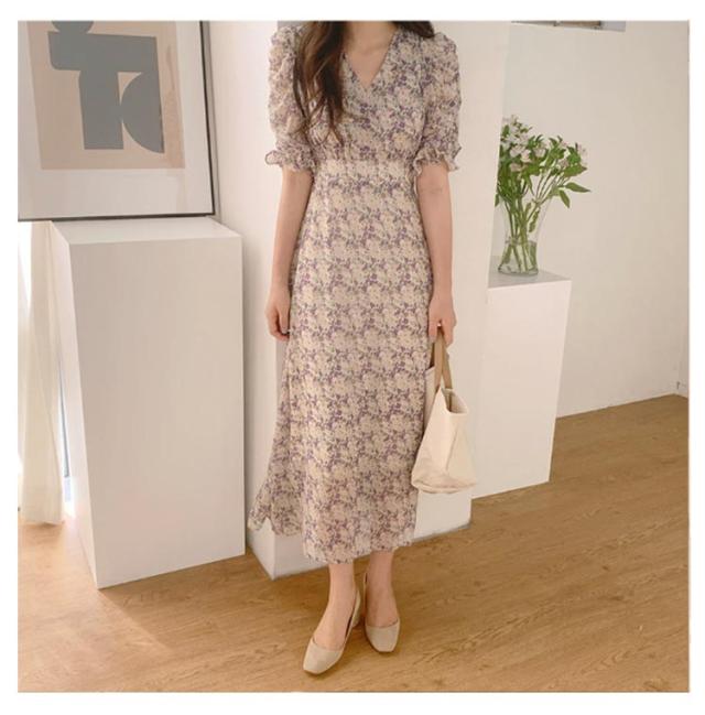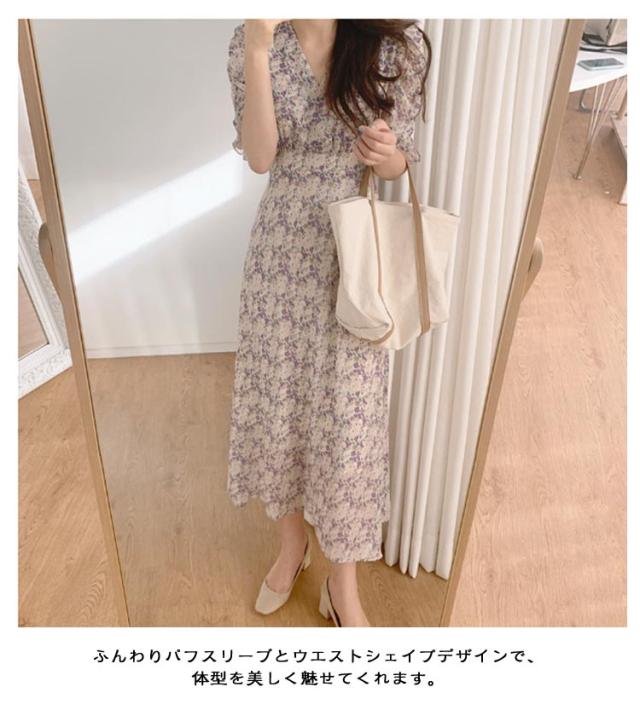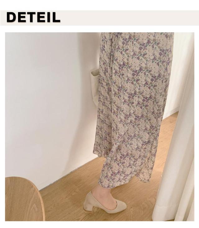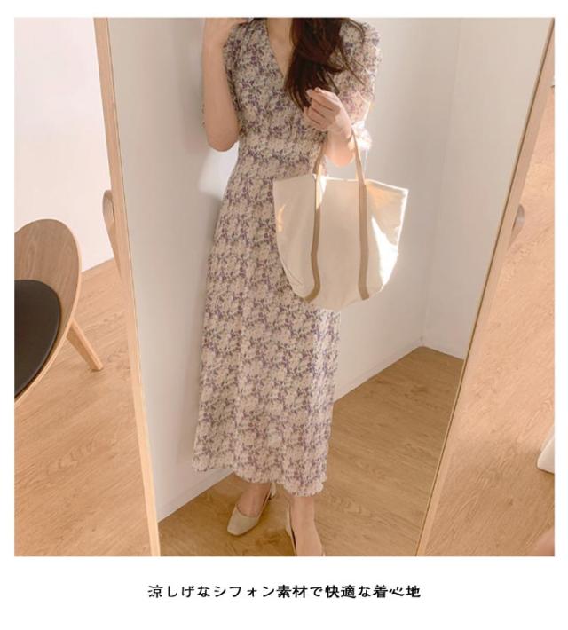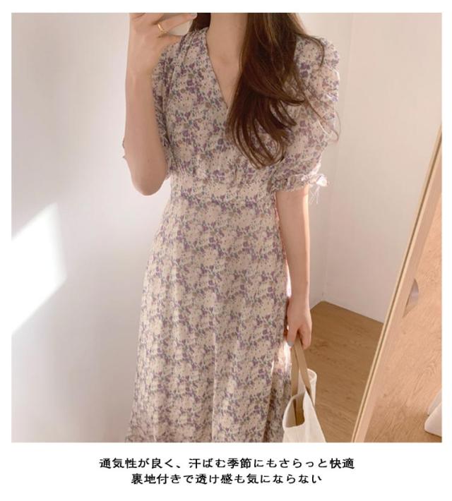 花柄 夏用 レディース Vネック シフォンワンピース ワンピース 着痩せ 薄手 春 体型カバー フェミニン シンプル ミモレ丈ワンピース きれいめ ワンピース 可愛い お洒落 リゾート
