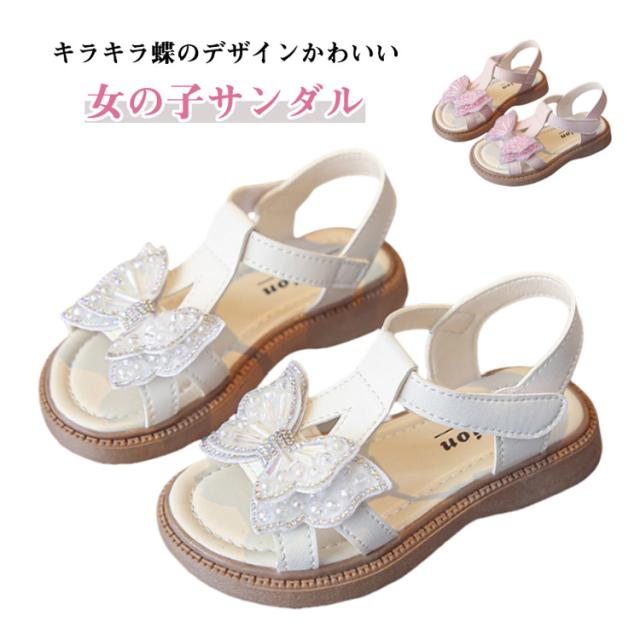 | キラキラ蝶のデザインかわいい♪女の子サンダル 女の子が大好きなキラキラ可愛いデザイン♪ マジックテープで着脱が簡単なのがうれしいポイント◎ ワンピースやスカートと合わせたガーリーなコーディネートがオススメ。 キュートなサンダルで足元もおめかしして春夏のおでかけを楽しんじゃお! | |