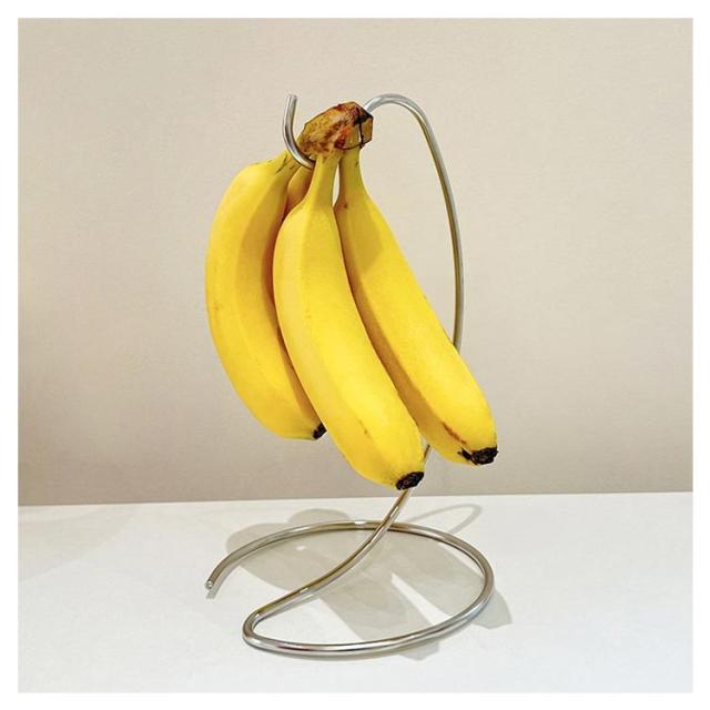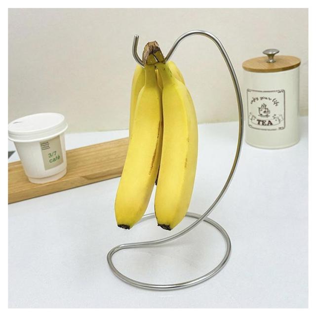 | スタイリッシュなバナナスタンド! バナナを1房保管できる商品で、吊るすことで黒ずみや傷みが進みにくくなります。 ステンレスそ素材を使い、錆びにくく、シンクの近くなど水回りに置く場合にも適しています。 様々なインテリアに馴染みやすいシンプルですっきりしたデザインです。 | |