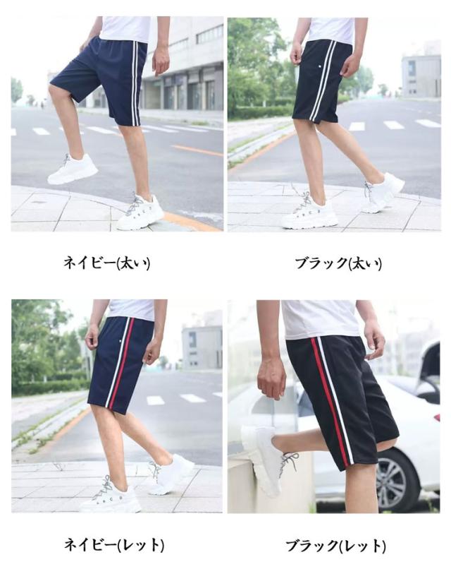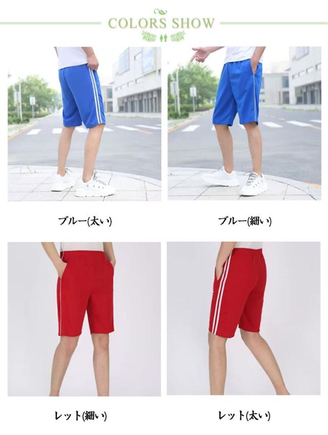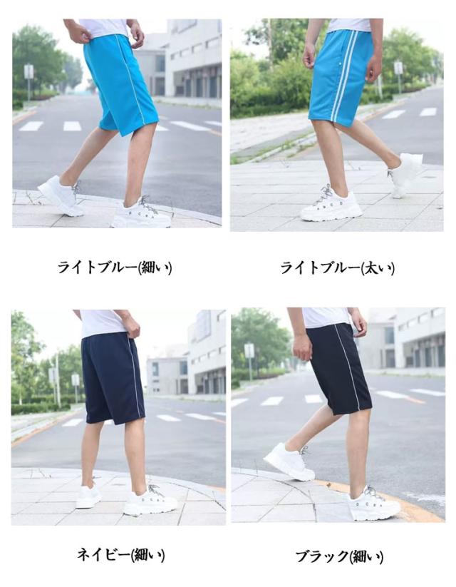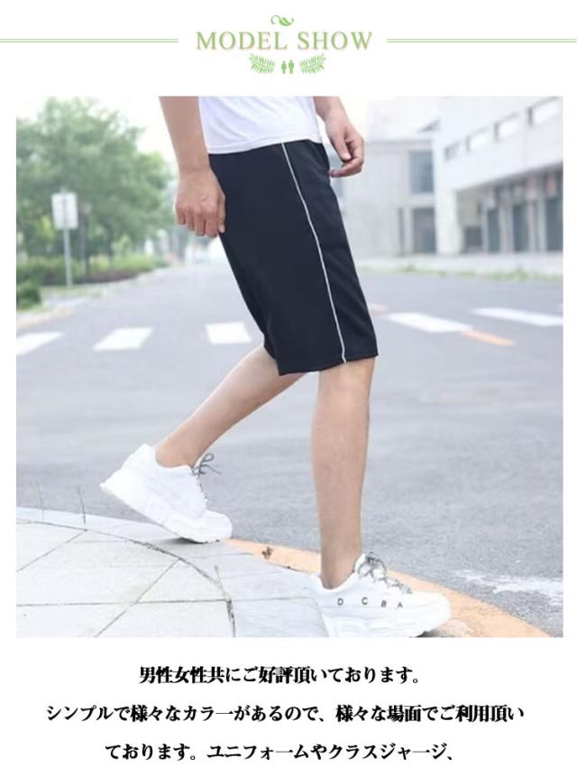 メンズ ストリート系 ダンス ユニセックス スポーツウェアー ジャージ ボトムス ショートパンツ 5分丈 ジャージ ルームウェア 薄手 ハーフパンツ 衣装 レディース 2本ライン サイドライン カラージャージ ハーフパンツ 作業着