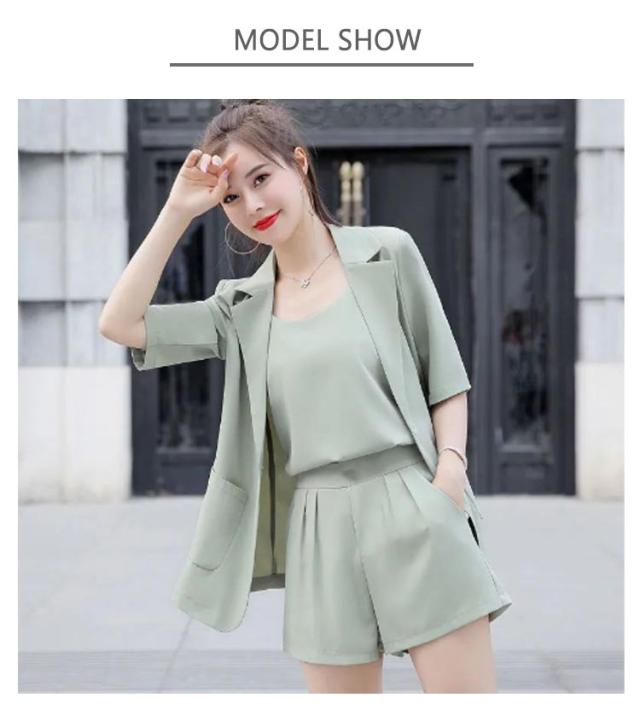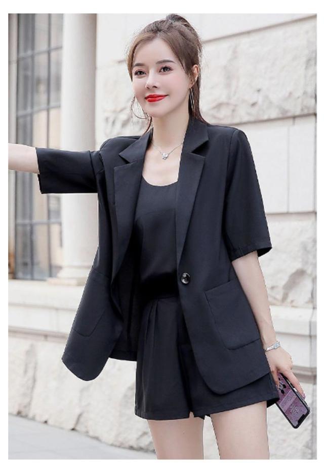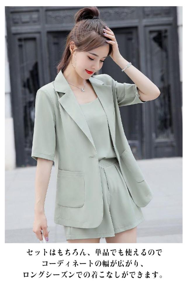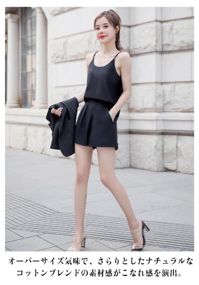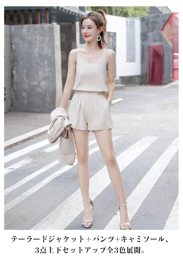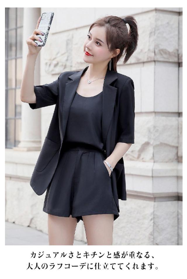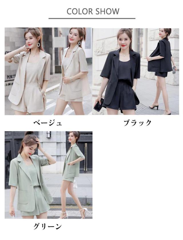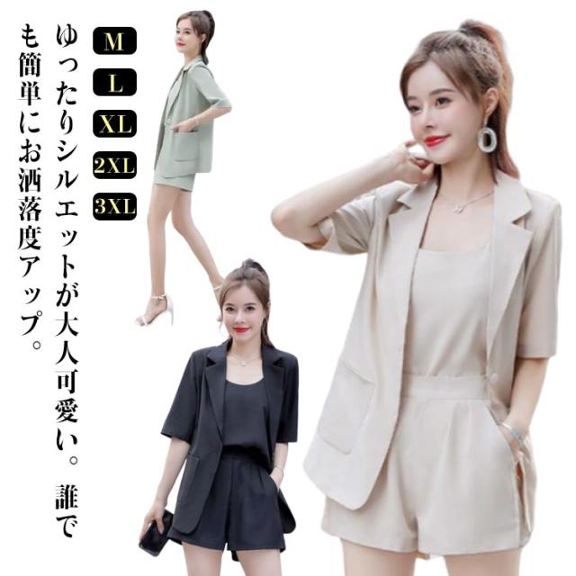 スーツ サマースーツ ビジネススーツ カジュアルスーツ 涼しい 半袖 薄手 夏 上下3点セット カジュアルスーツ レディース 体型カバー ショートパンツ テーラードジャケット+パンツ+キャミソール オフィス フォーマル 通勤 OL 日常 お呼ばれ