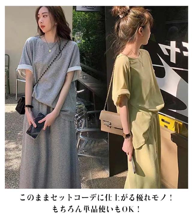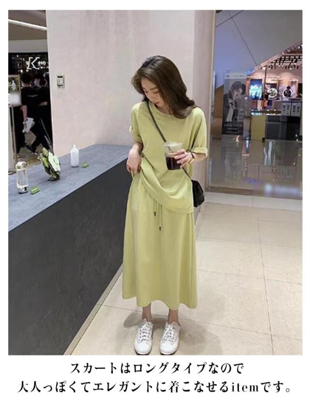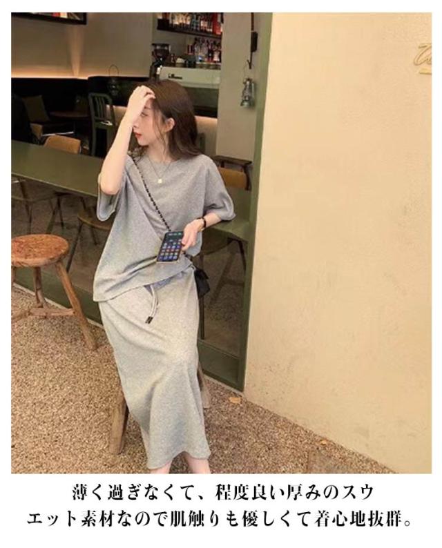 上下 ルームウエア 着痩せ レディース スカートセットアップ きれいめ 万能 スウェット 春秋 ワンマイルウエア 部屋着 折り返し袖 半袖 パーカー トップス Tシャツ スウェット 体型カバー スカート 大人 デイリーウエア 普段着